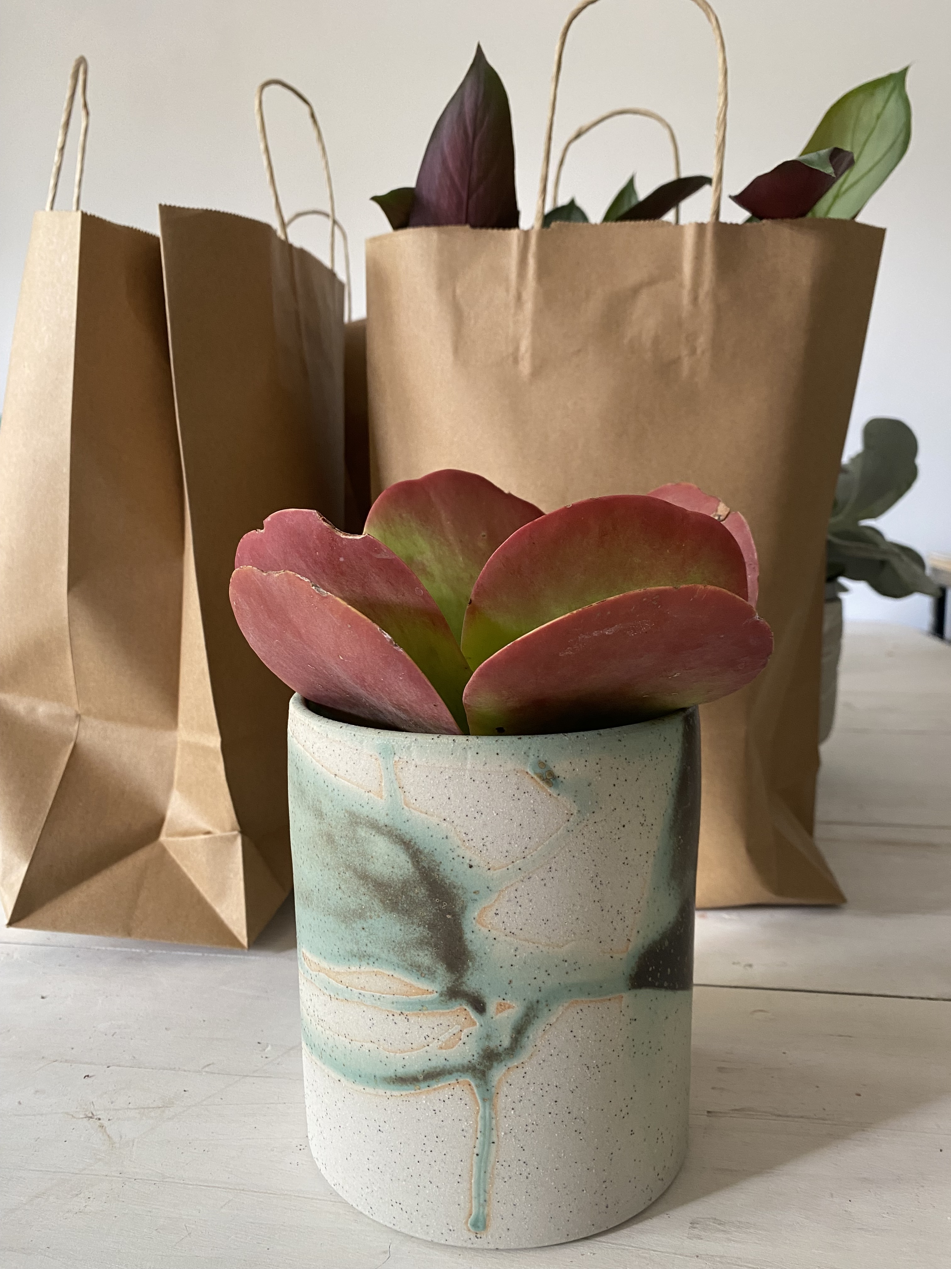 this small succulent travelled with me to artisans in the gardens for the last week and quietly demonstrated his versility in various bowls and planters , he’s now happy to be home in the studio!! big Thankyou to all #foundationandfriendsofthegardens , #botanicgardens.org.au and #Artisansinthegardens all helpers that make this event happen in such a great location.