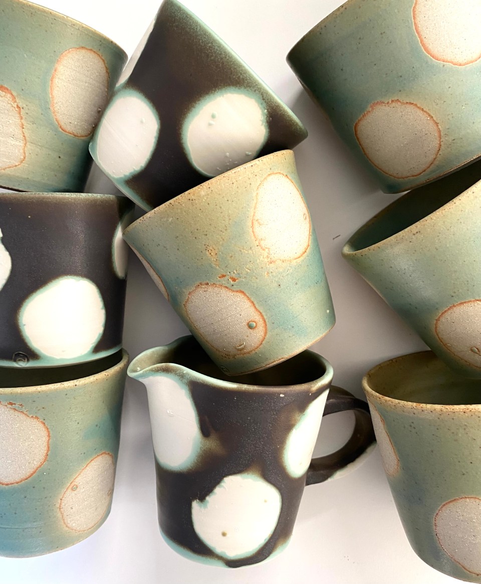 Posted by aleidapullar on November 17, 2023 in Studio Blog jugs beakers and cups porcelain and stoneware jugs beakers and cups with same copper glaze out of the kiln yesterday.. Related